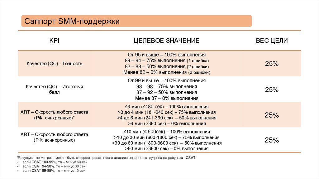 *Результат по метрике может быть скорректирован после анализа влияния сотрудника на результат CSAT: