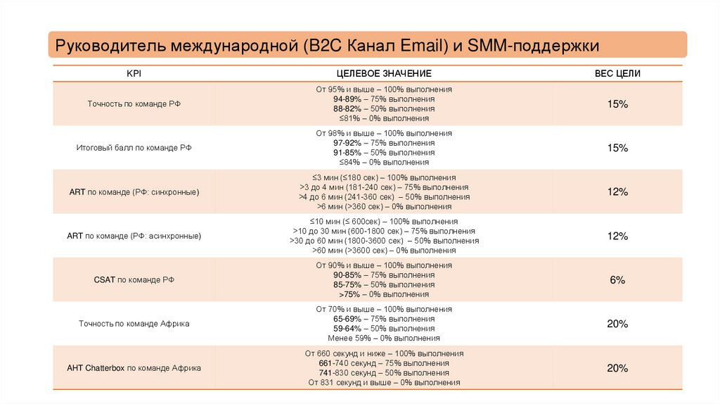 Руководитель международной (B2C Канал Email) и SMM-поддержкиKPI