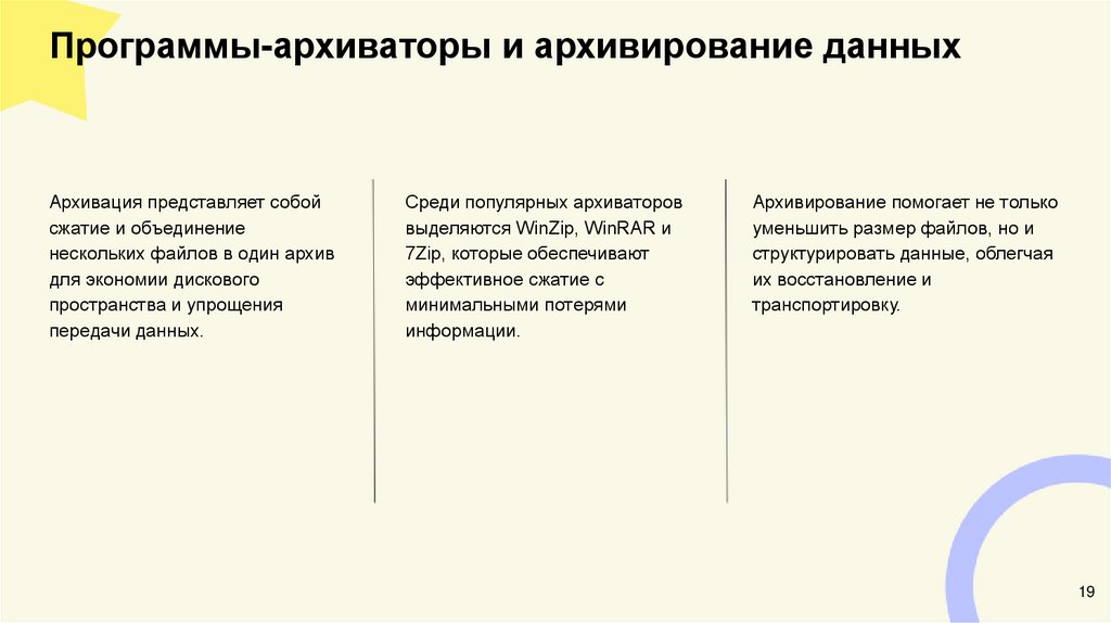 Программы-архиваторы и архивирование данныхАрхивация представляет собой