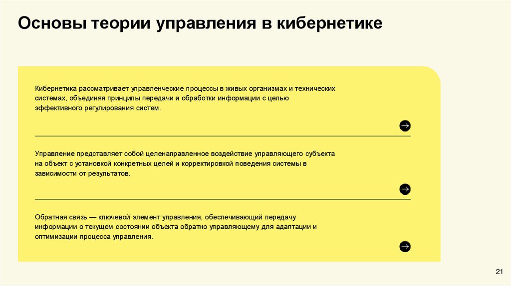 Основы теории управления в кибернетикеКибернетика рассматривает управленческие процессы в живых организмах и технических