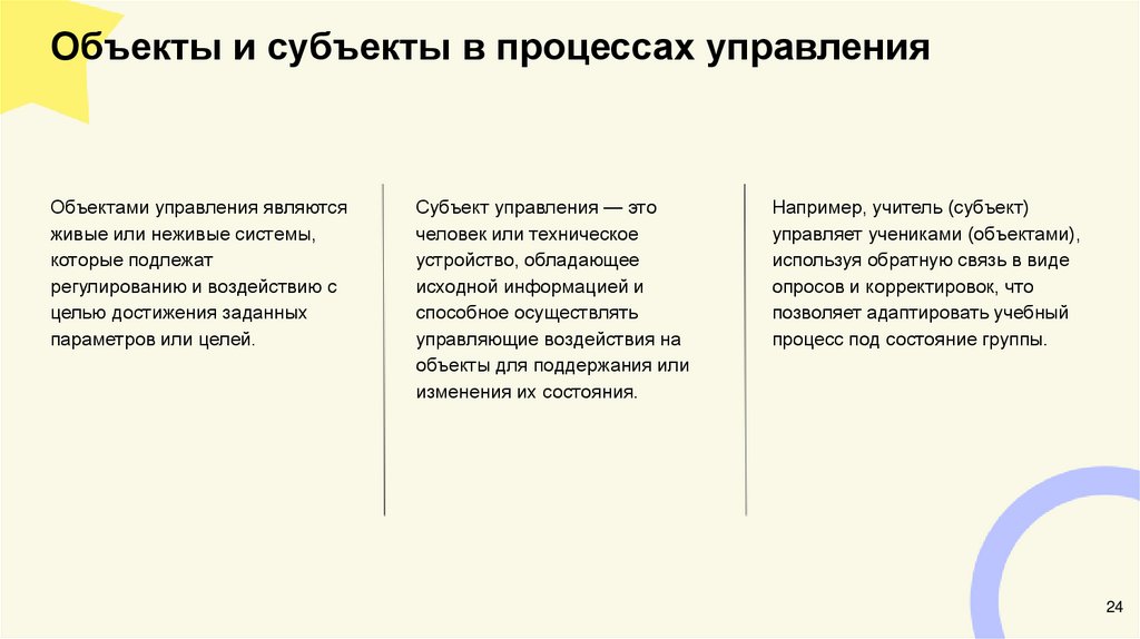 Объекты и субъекты в процессах управленияОбъектами управления являются