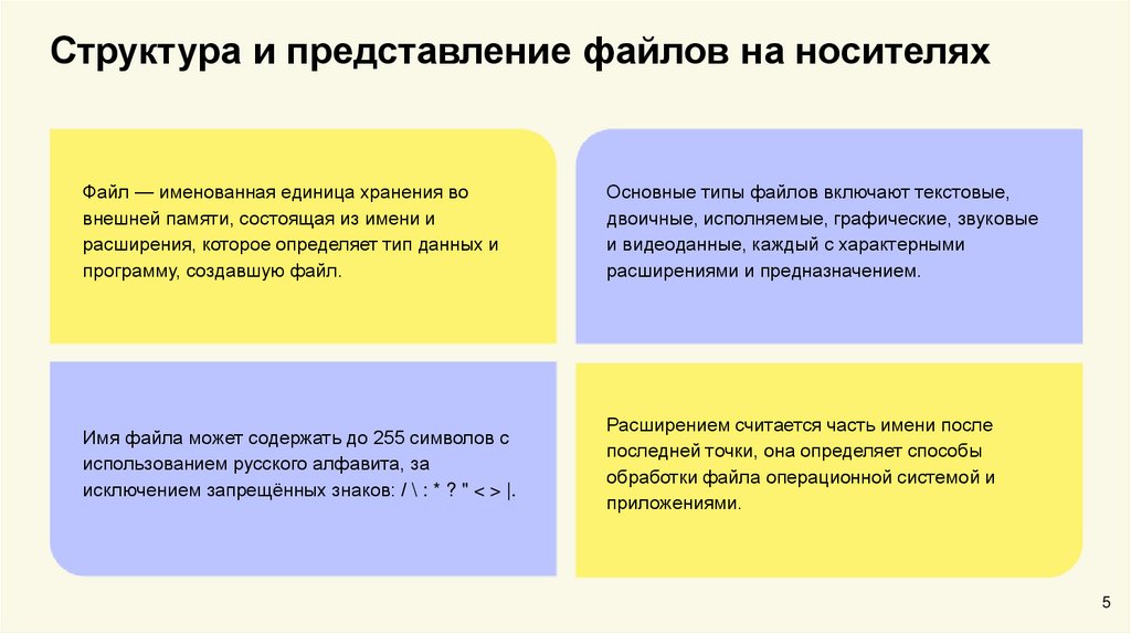 Структура и представление файлов на носителяхФайл — именованная единица хранения во