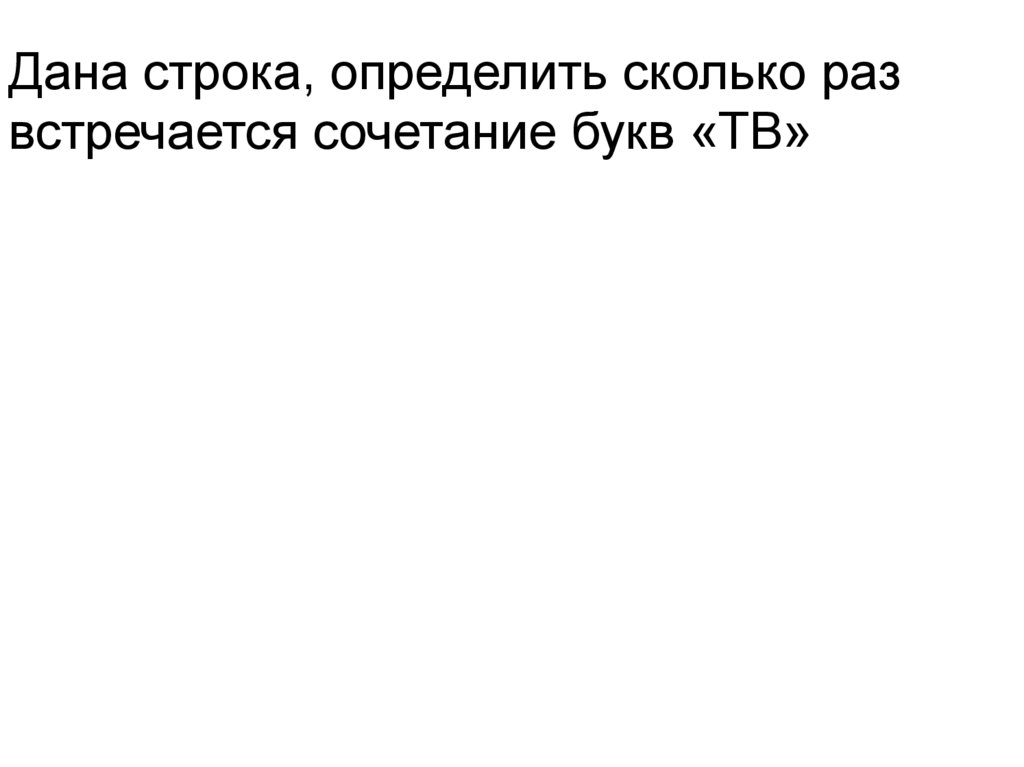 Дана строка, определить сколько развстречается сочетание букв «ТВ»