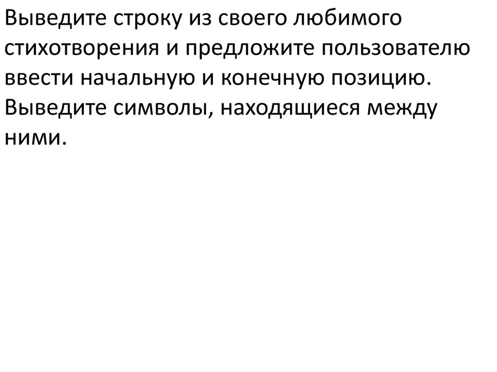 Выведите строку из своего любимогостихотворения и предложите пользователю