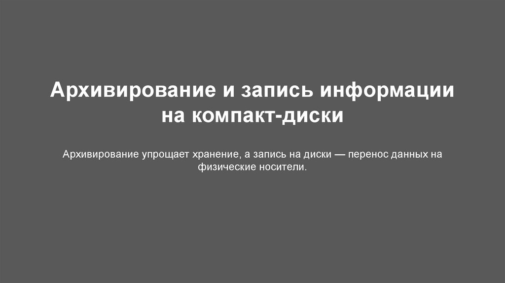 Архивирование упрощает хранение, а запись на диски — перенос данных на