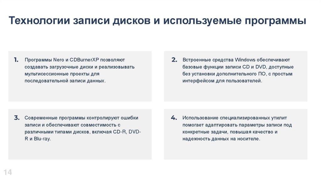 Сравнение носителей: CD-R, DVD-R, Blu-rayТаблица демонстрирует ключевые отличия