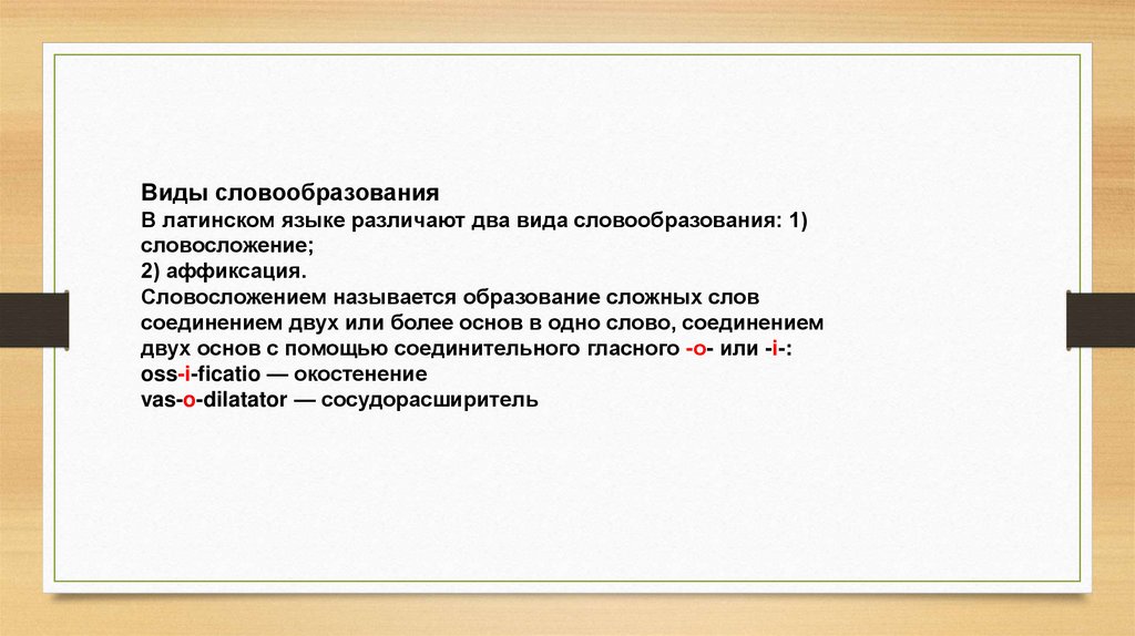 Виды словообразованияВ латинском языке различают два вида словообразования: 1)