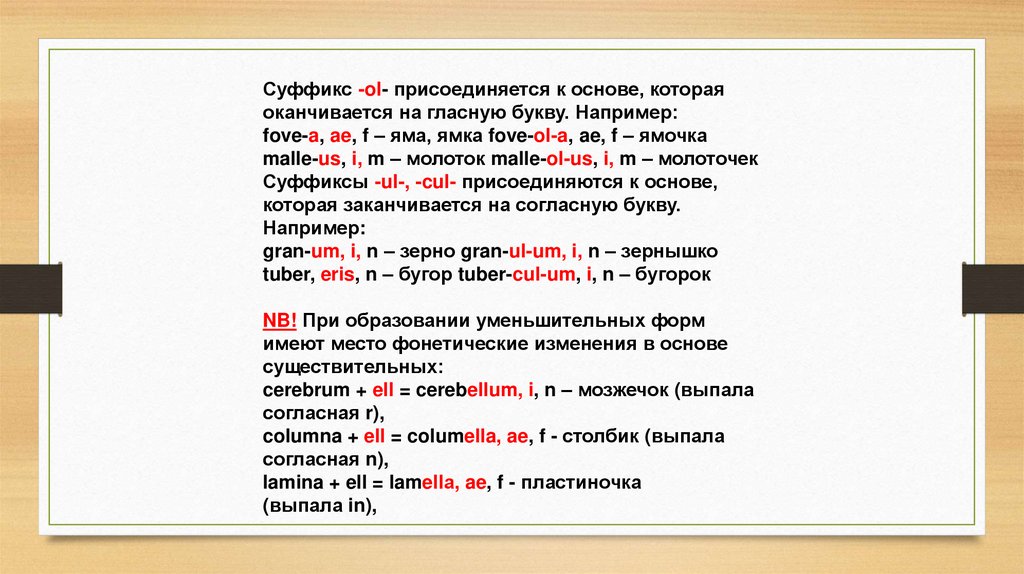 Суффиксы -ul-, -cul- присоединяются к основе,