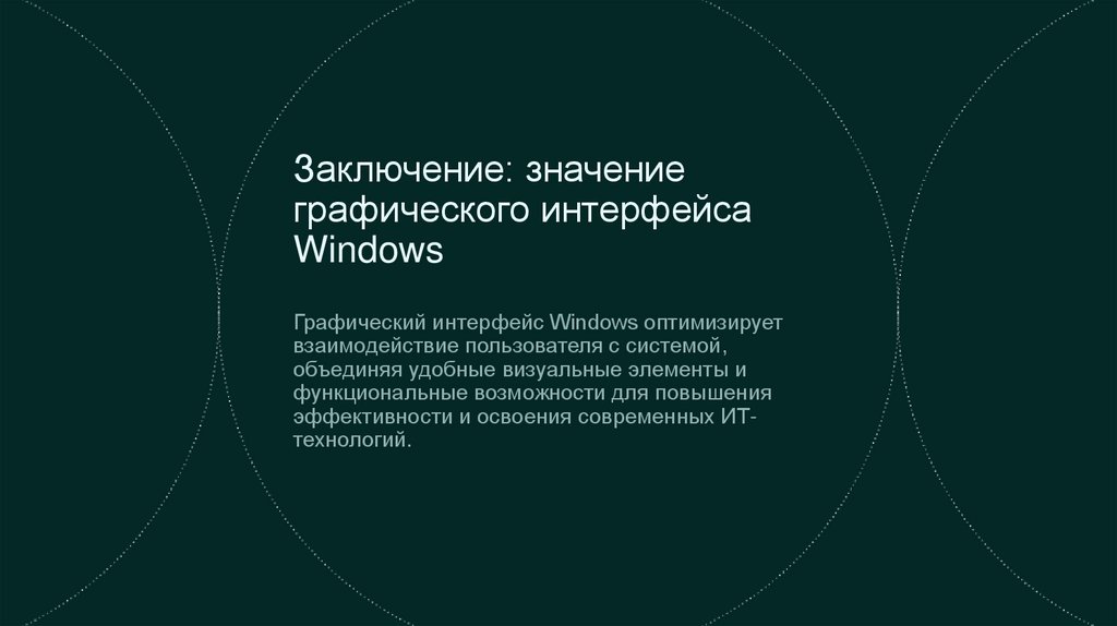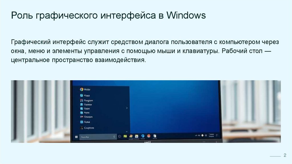 Роль графического интерфейса в WindowsГрафический интерфейс служит средством диалога пользователя с компьютером через