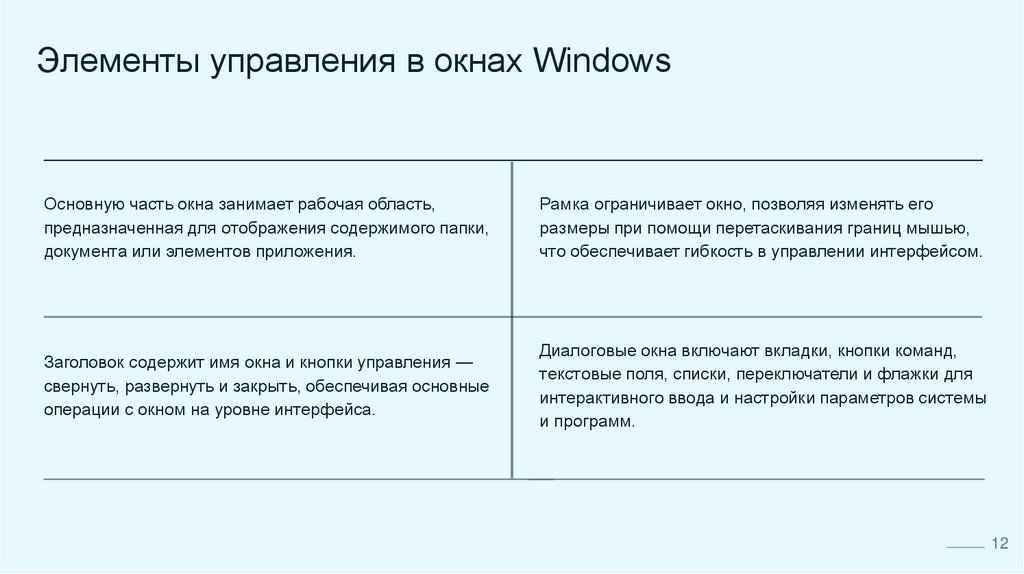Основные элементы графического интерфейса WindowsРабочий стол представляет собой всю поверхность