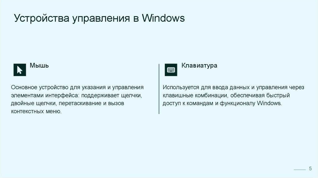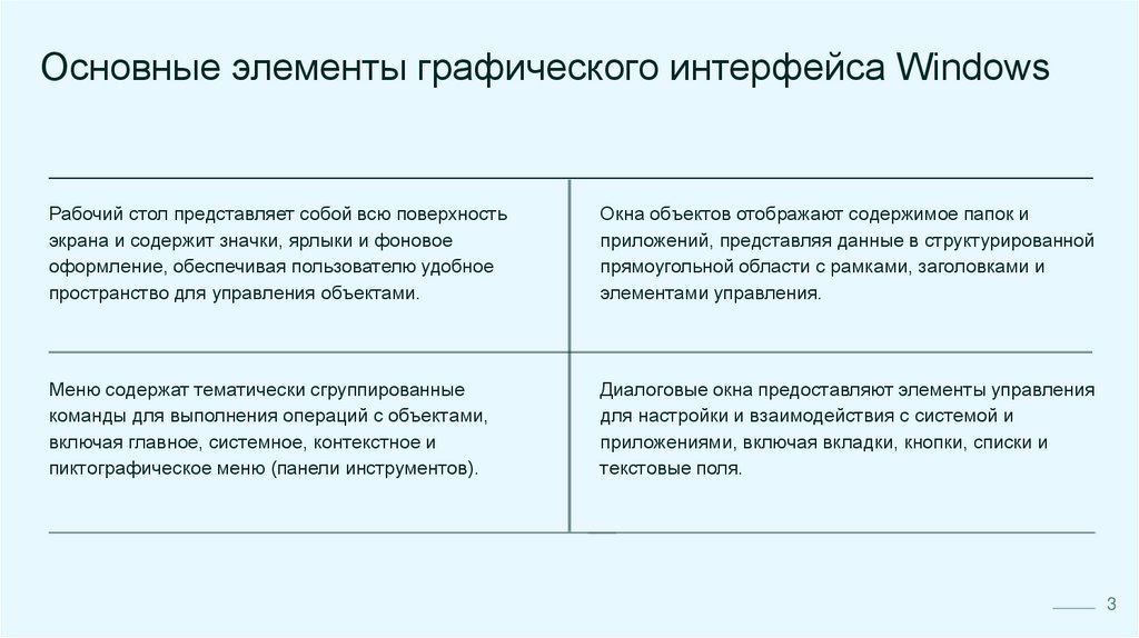 окна, меню и элементы управления с помощью мыши и клавиатуры. Рабочий стол —
