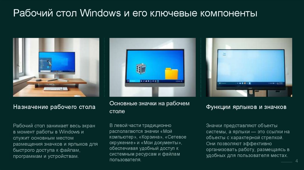 Рабочий стол Windows и его ключевые компонентыНазначение рабочего стола