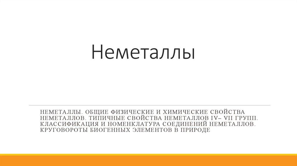 Н Е М Е ТА Л Л Ы . О Б Щ И Е Ф И З И Ч Е С К И Е И Х И М И Ч Е С К И Е С В О Й С Т ВАН Е М Е ТА Л Л О В . Т И П И Ч Н Ы Е С В О Й С Т ВА Н Е М Е ТА Л Л О В I V – V I I Г РУ П П .