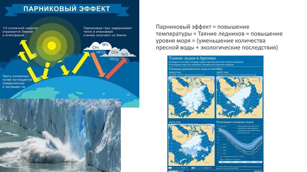 Парниковый эффект = повышениетемпературы = Таяние ледников = повышение