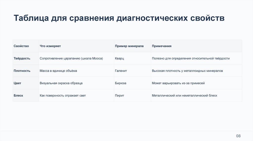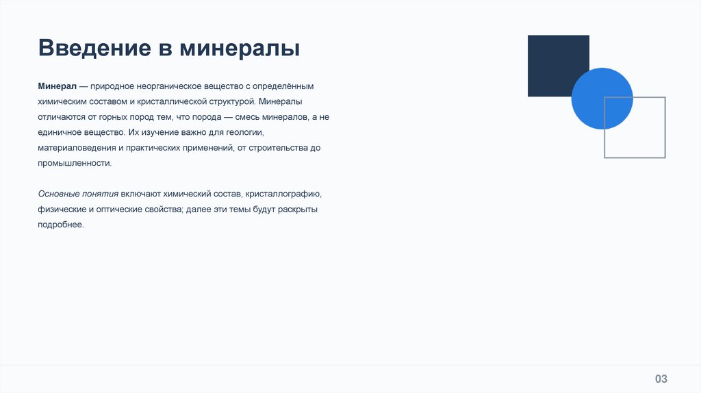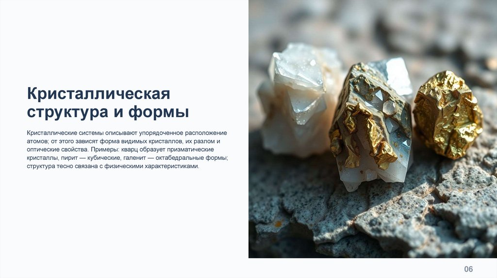 Основные понятия включают химический состав, кристаллографию,