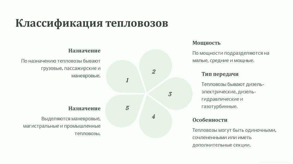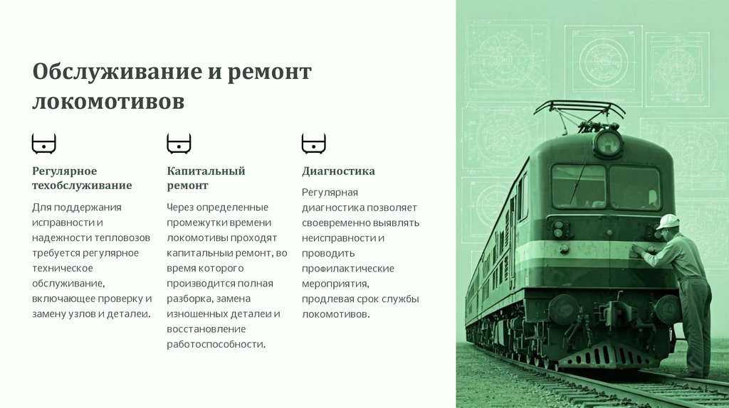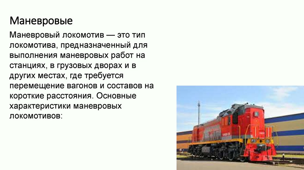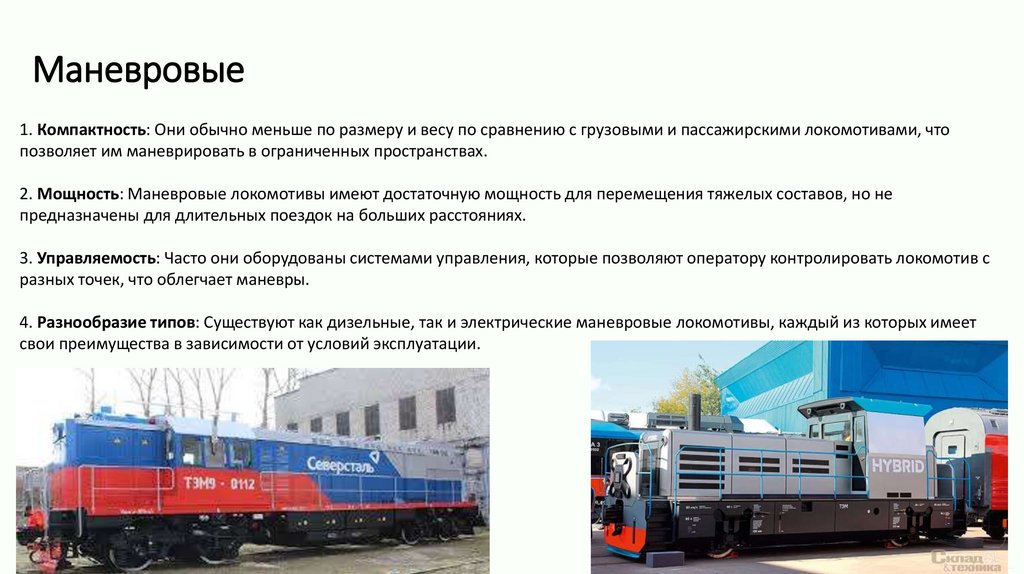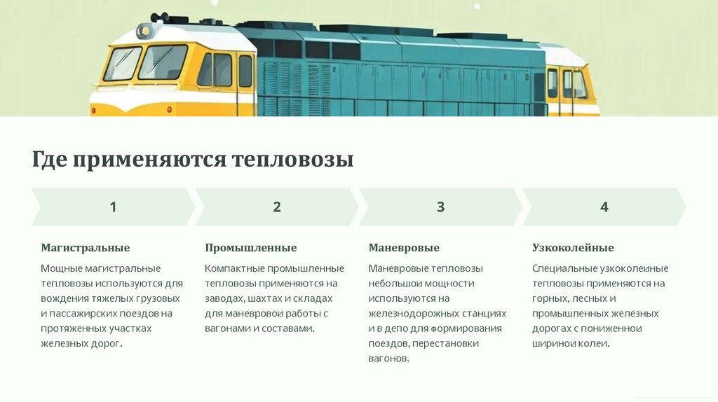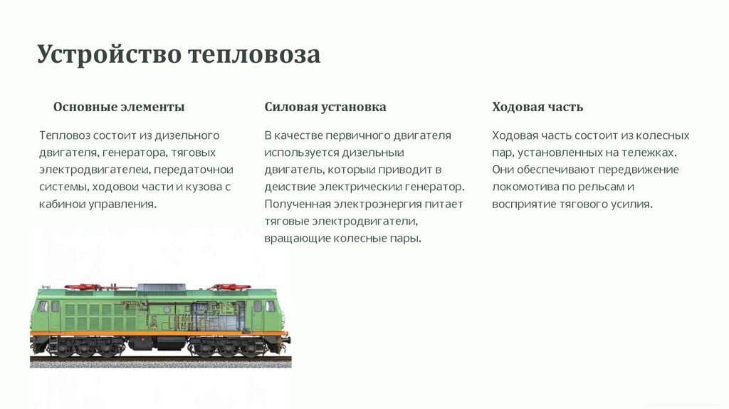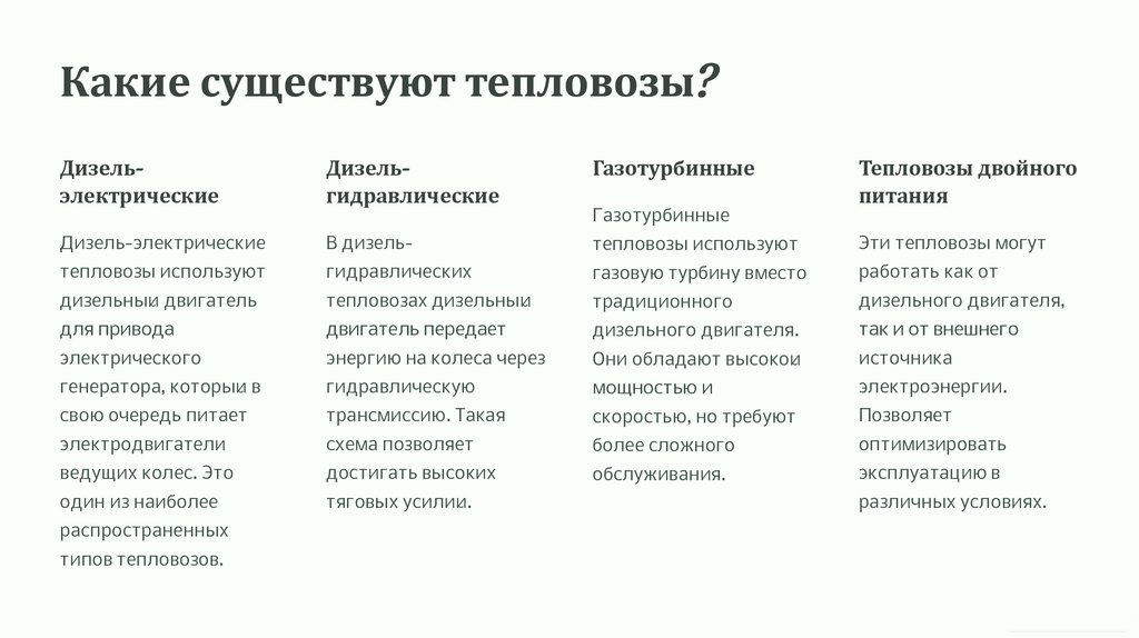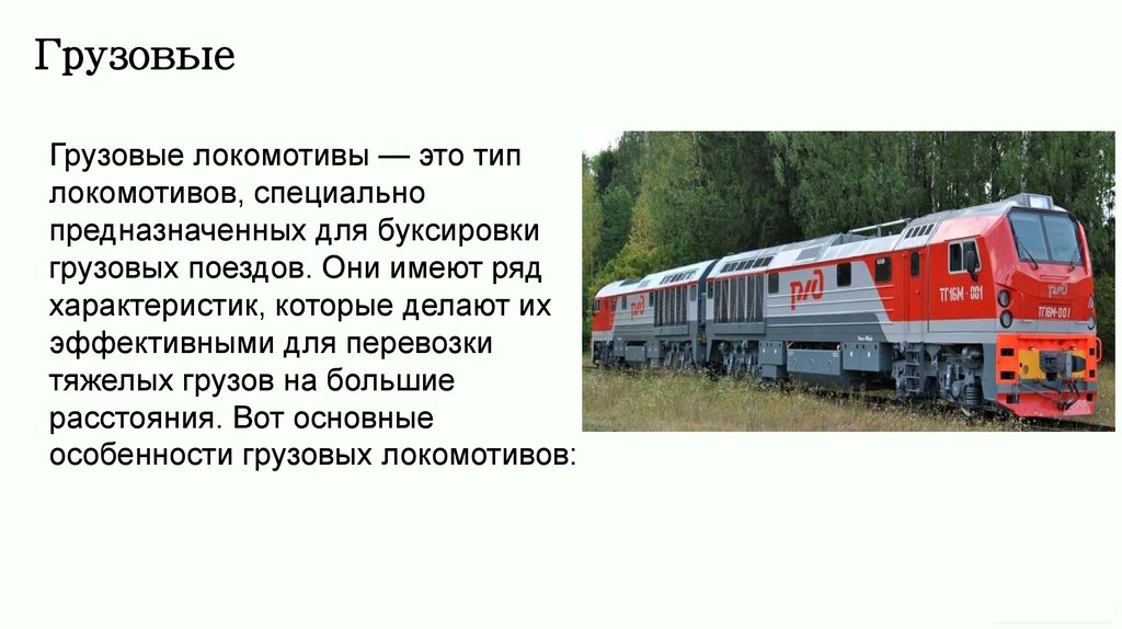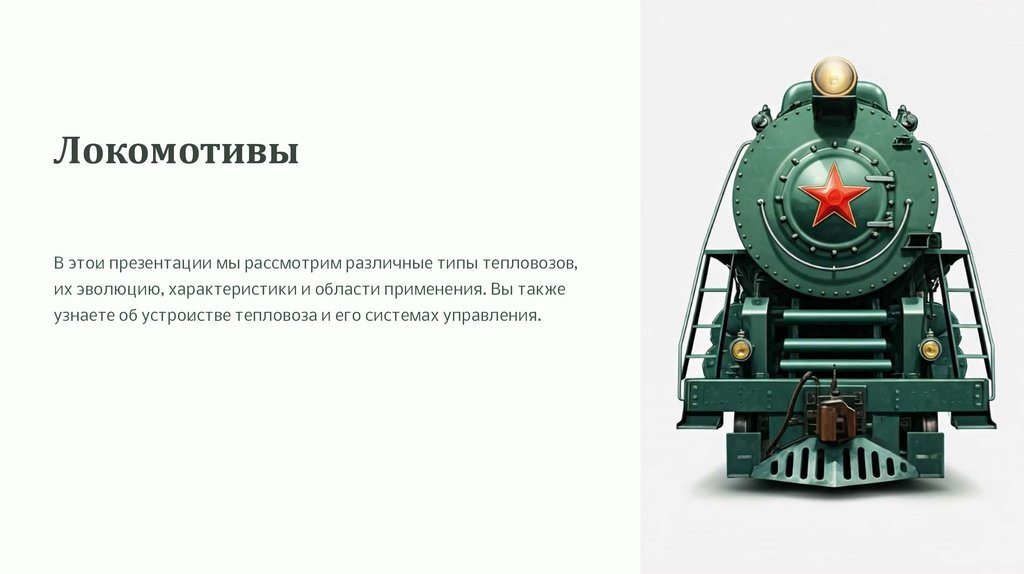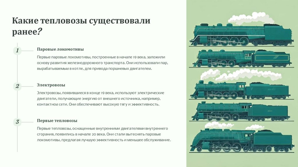 ЛокомотивыВ этой презентации мы рассмотрим различные типы тепловозов,