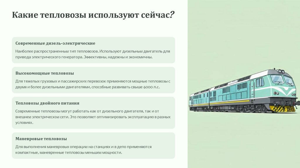 Какие тепловозы используют сейчас?Современные дизель-электрические