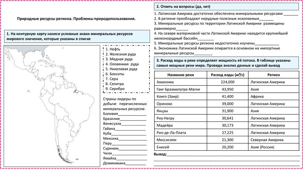 1. Латинская Америка достаточно обеспечена минеральными ресурсами _______