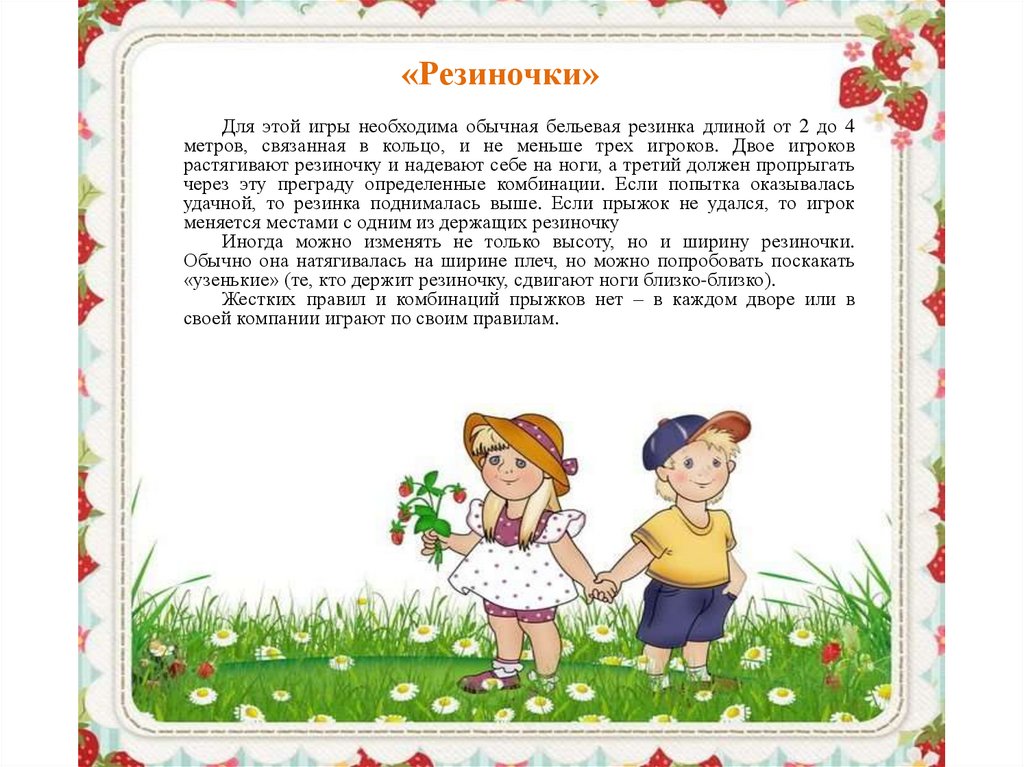 «Резиночки»Для этой игры необходима обычная бельевая резинка длиной от 2 до 4