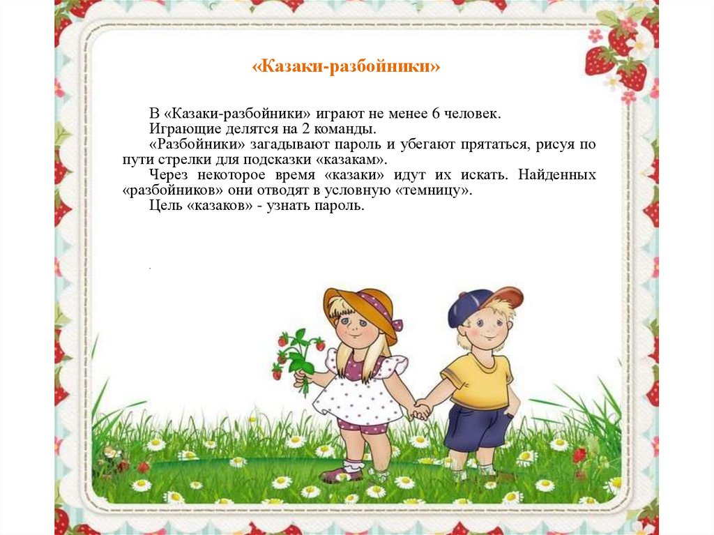 «Казаки-разбойники»В «Казаки-разбойники» играют не менее 6 человек.