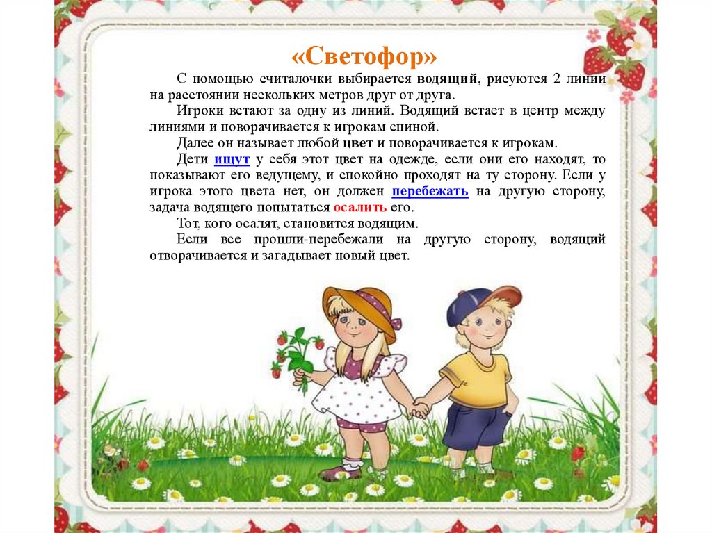 «Светофор»С помощью считалочки выбирается водящий, рисуются 2 линии