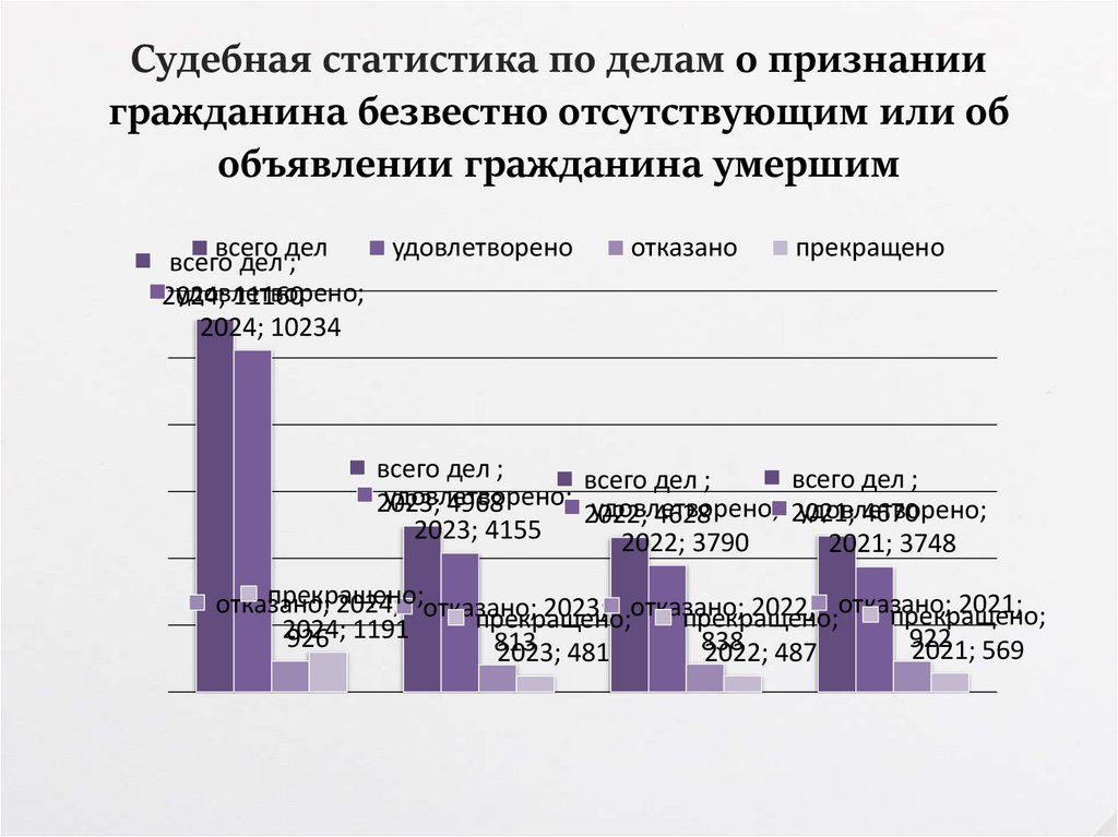 Судебная статистика по делам о признаниигражданина безвестно отсутствующим или об