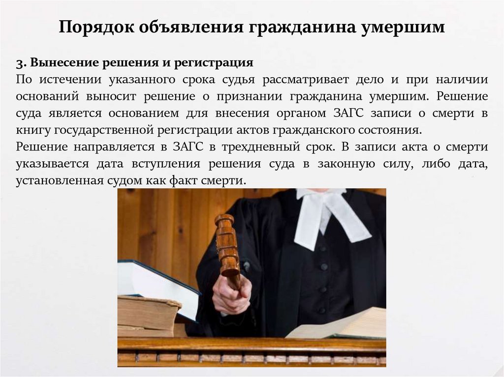 механизм, позволяющий установить факт смерти лица при отсутствии