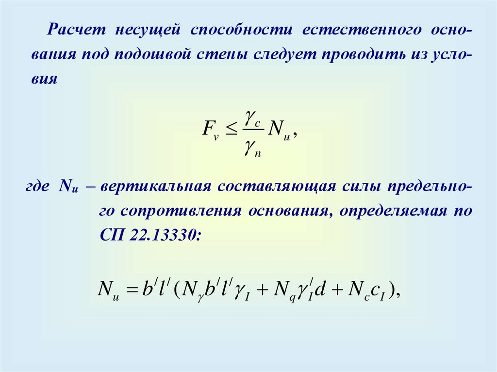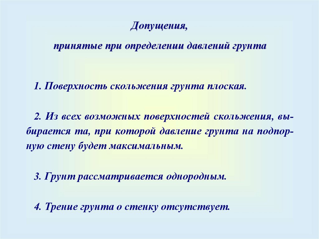 отметки и трением грунта по расчетной плоскости