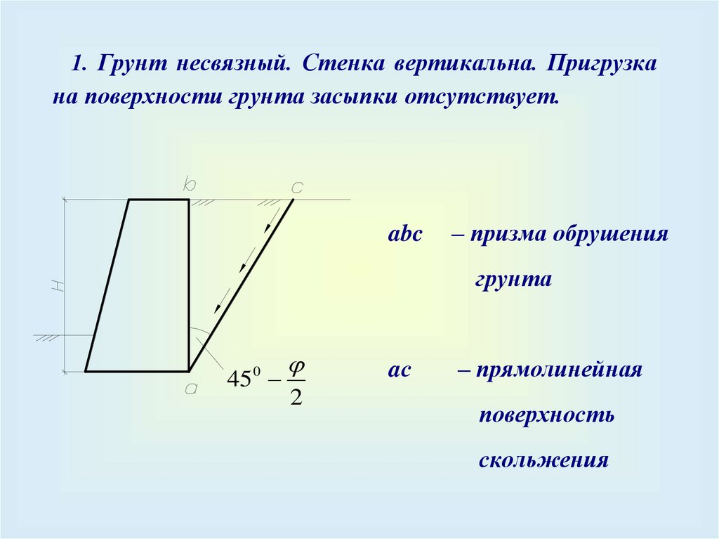 призмы обрушения, если нагрузка не имеет фиксированного положения.