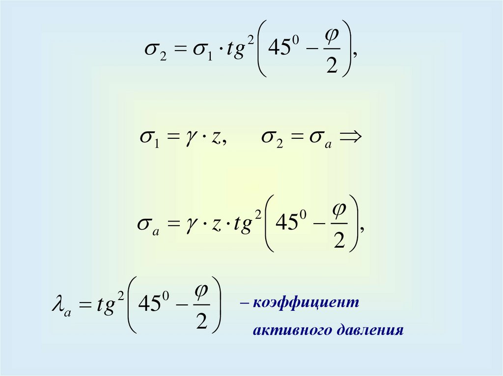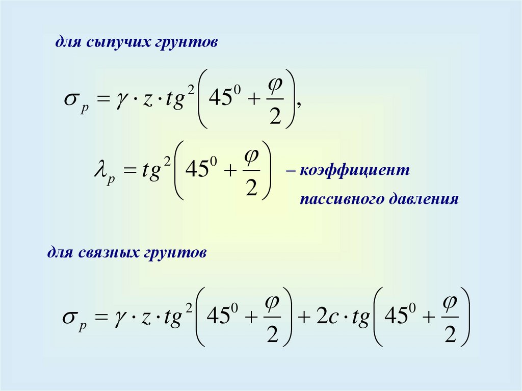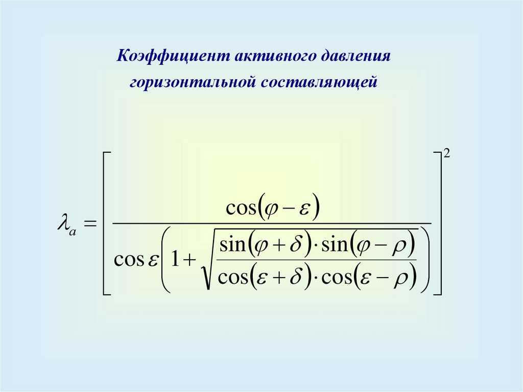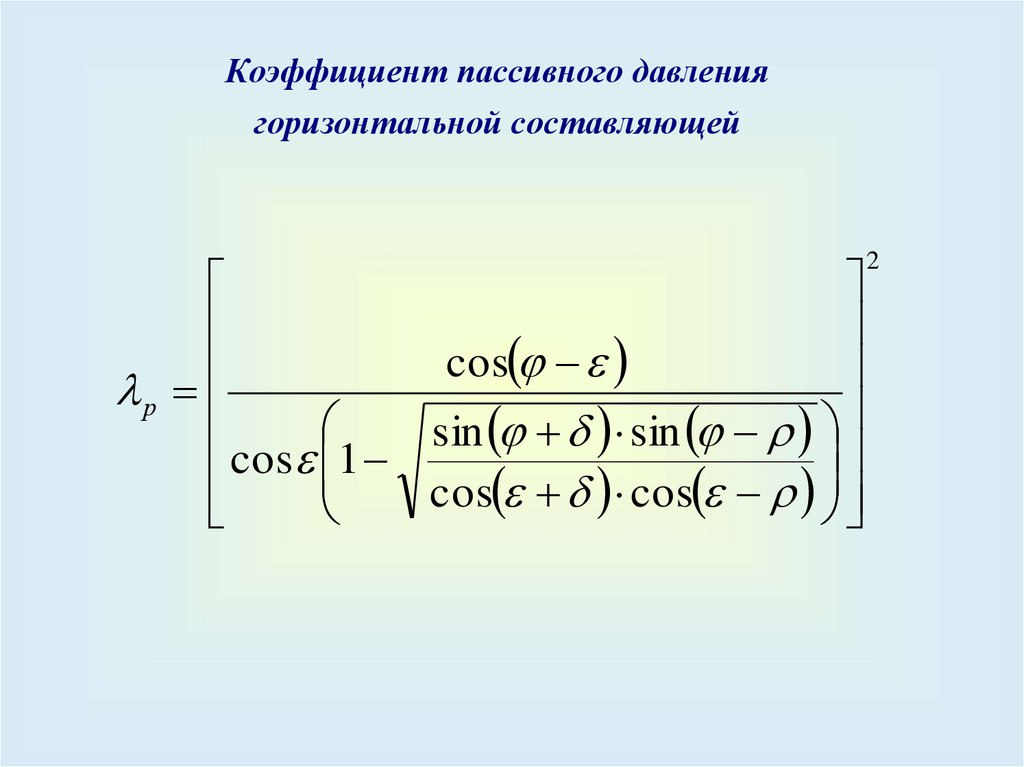 Коэффициент пассивного давлениягоризонтальной составляющей