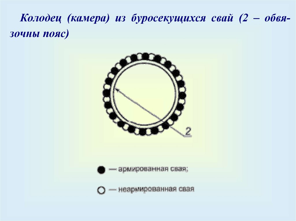 Колодец (камера) из буросекущихся свай (2 – обвязочны пояс)14.
