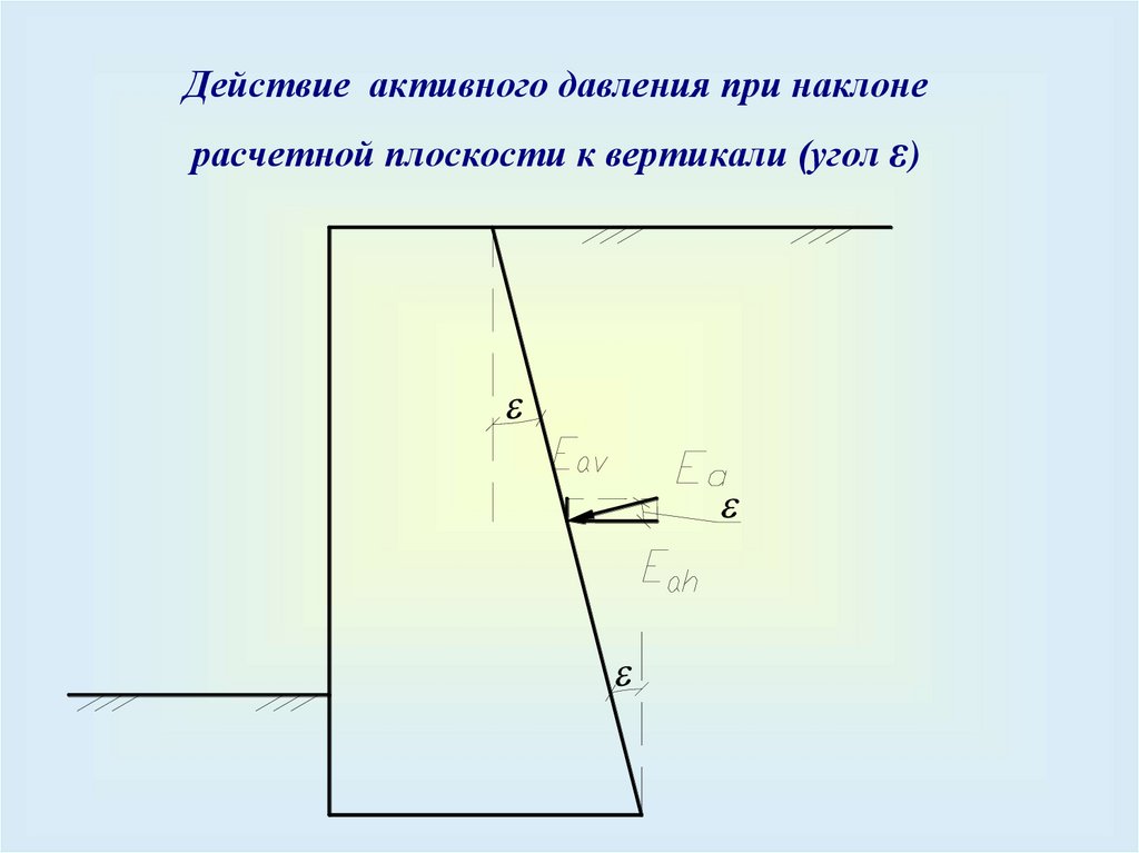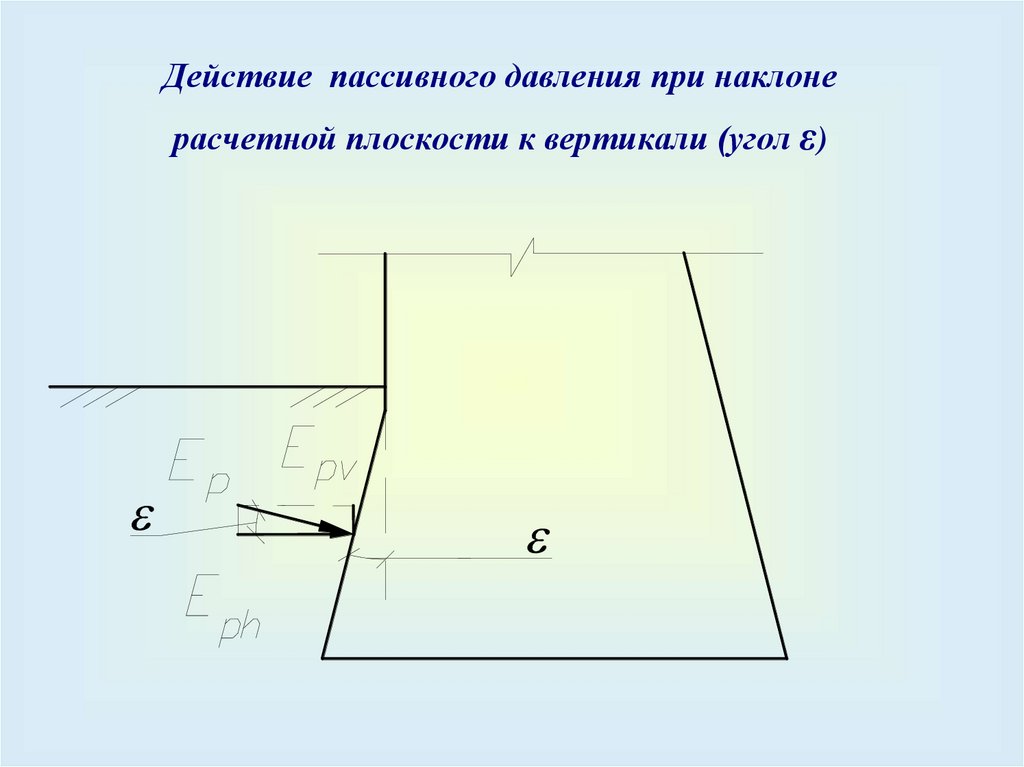 Действие пассивного давления при наклонерасчетной плоскости к вертикали (угол ε)