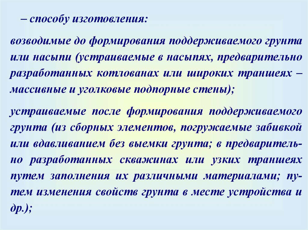 – способу изготовления:возводимые до формирования поддерживаемого грунта