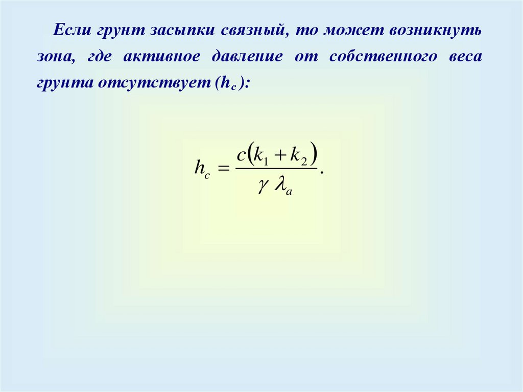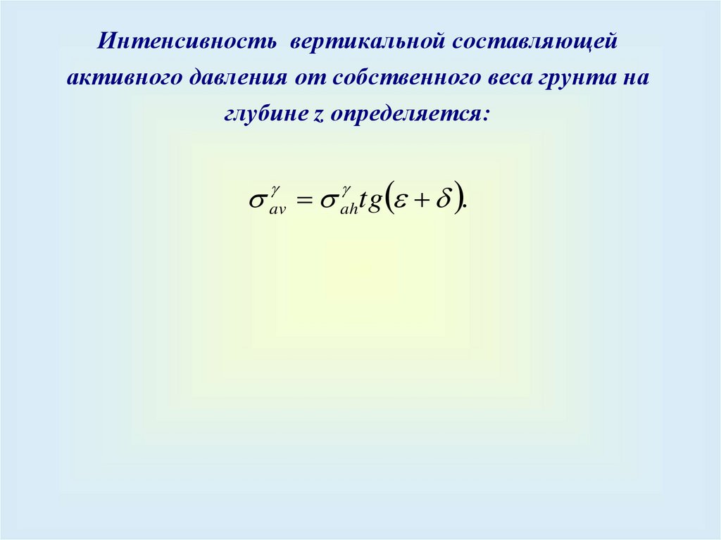 Интенсивность вертикальной составляющейактивного давления от собственного веса грунта на