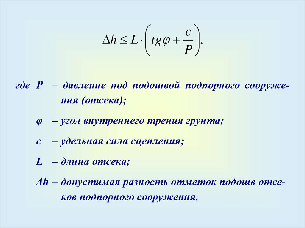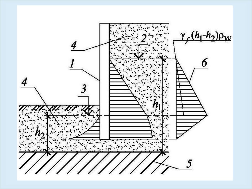 Давление подземных вод на подпорные сооруженияследует принимать в соответствии со значениями