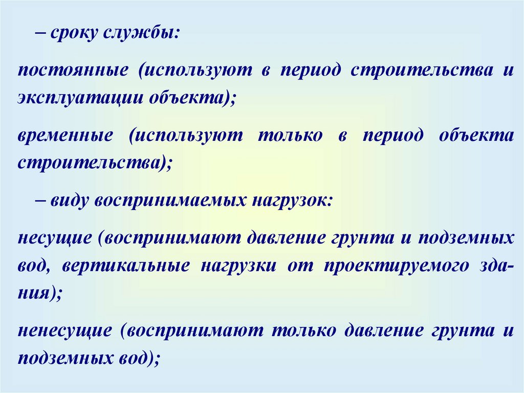 – сроку службы:постоянные (используют в период строительства и