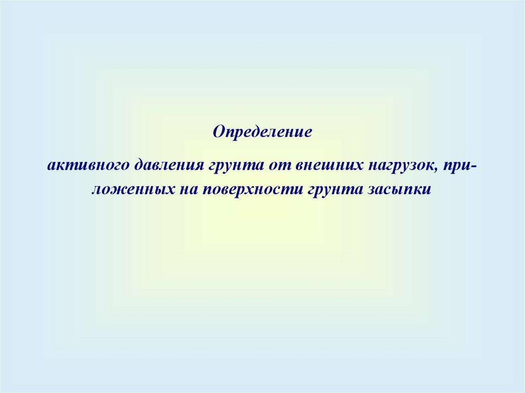 Определениеактивного давления грунта от внешних нагрузок, приложенных на поверхности грунта засыпки
