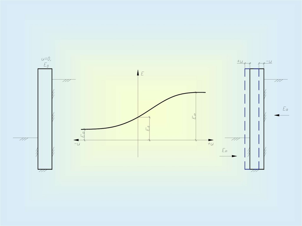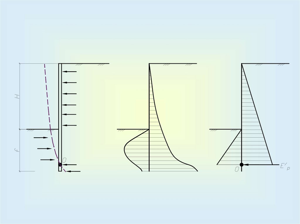 – определить упругий отпор E/р из уравнения равновесия горизонтальных сил (возникает ниже т.О за счет