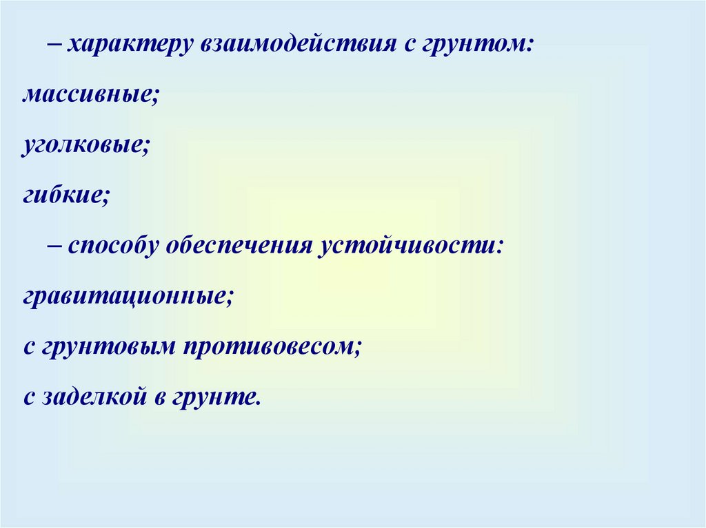 Подпорные сооружения разделяют по следующимпараметрам:
