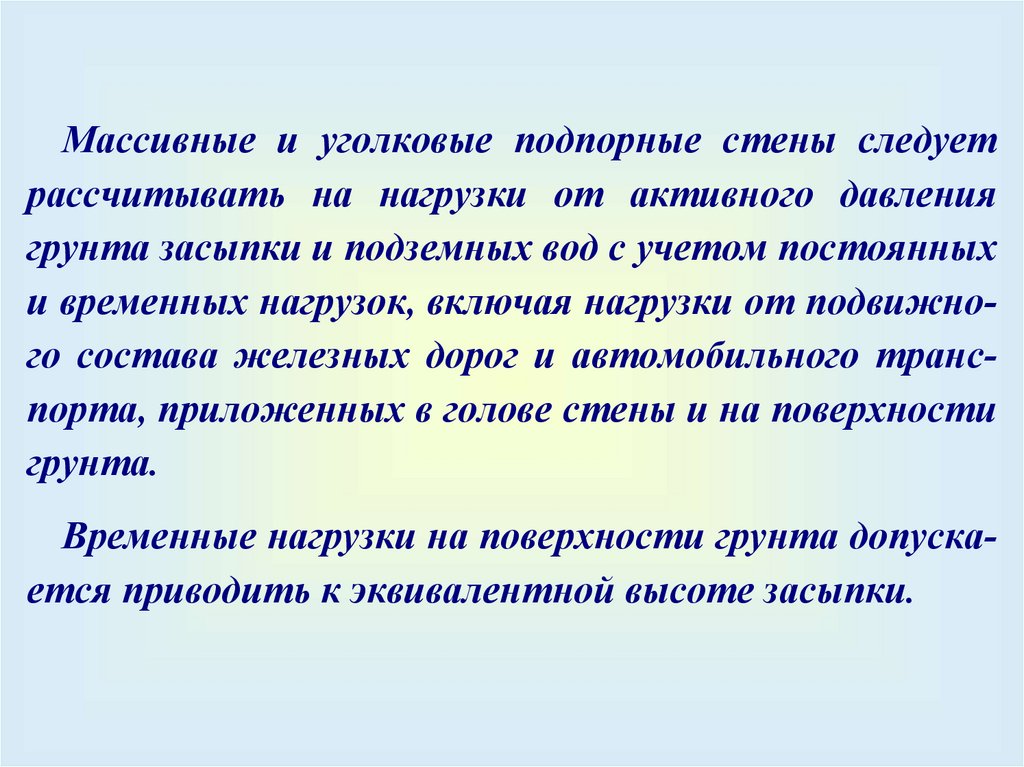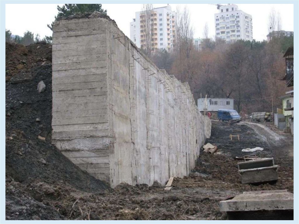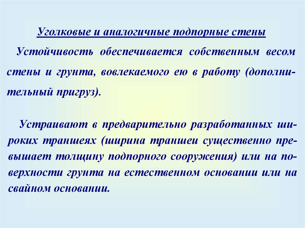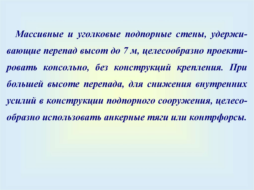 массивные и уголковые подпорные стены);