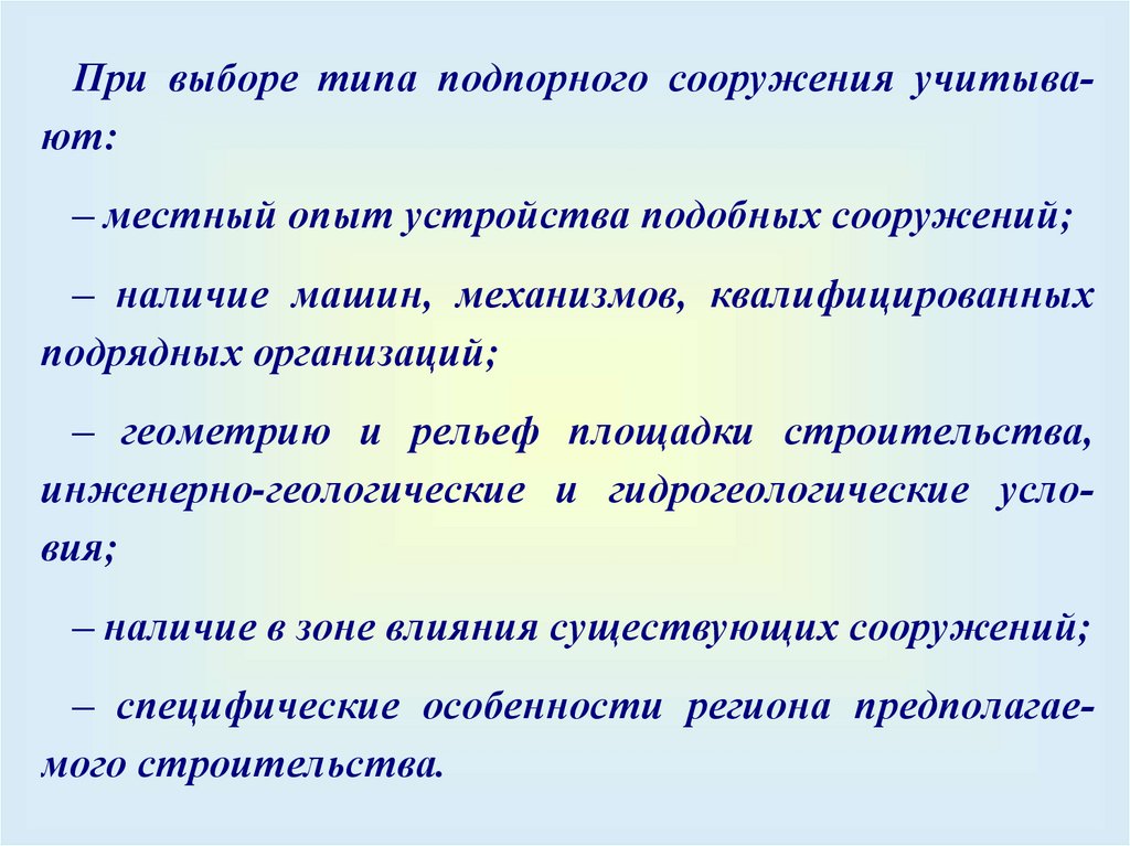 Классификацияподпорных сооружений