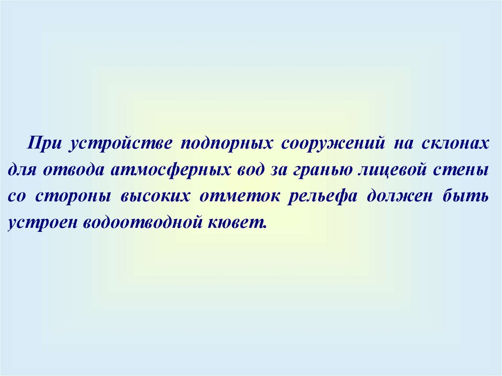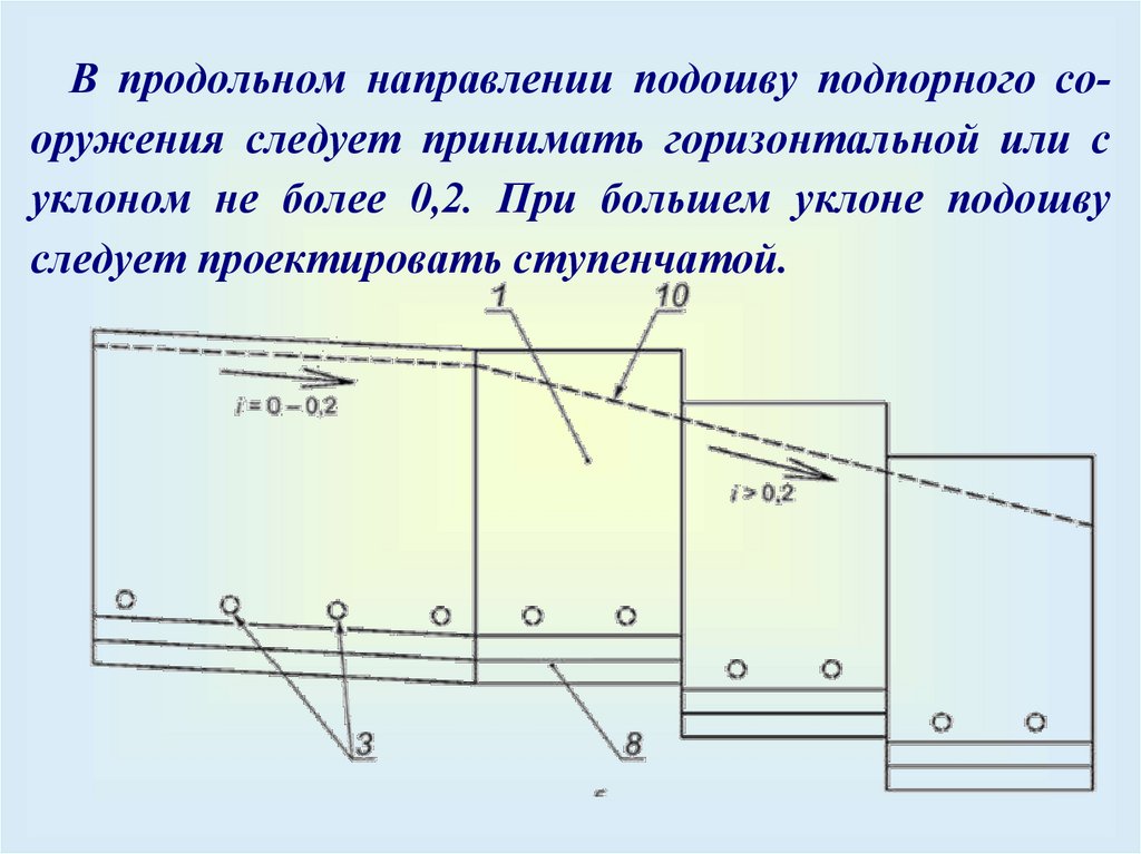 проходит через нижнюю точку подпорной стены.