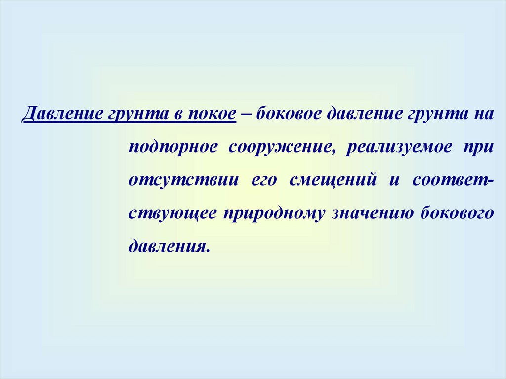 Давление грунта в покое – боковое давление грунта наподпорное сооружение, реализуемое при