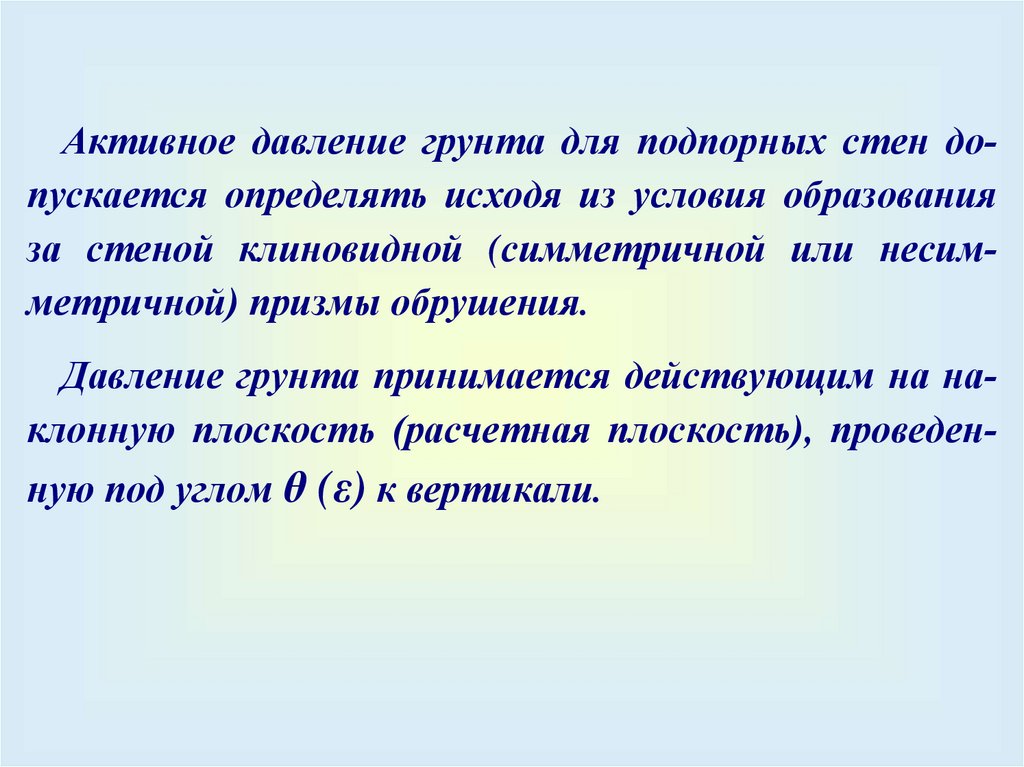 Действие пассивного давления с учетом угла ε и δ141.