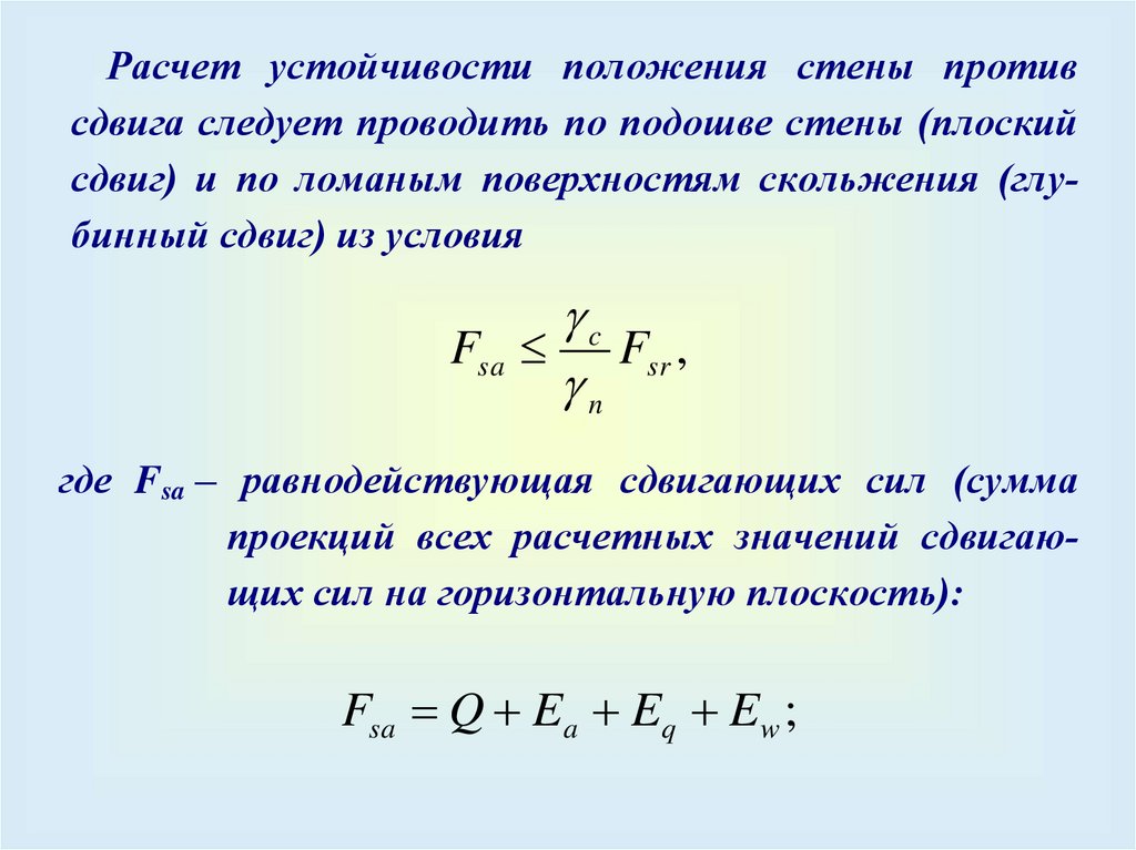Массивные подпорные стеныУстойчивость на сдвиг и опрокидывание массивных