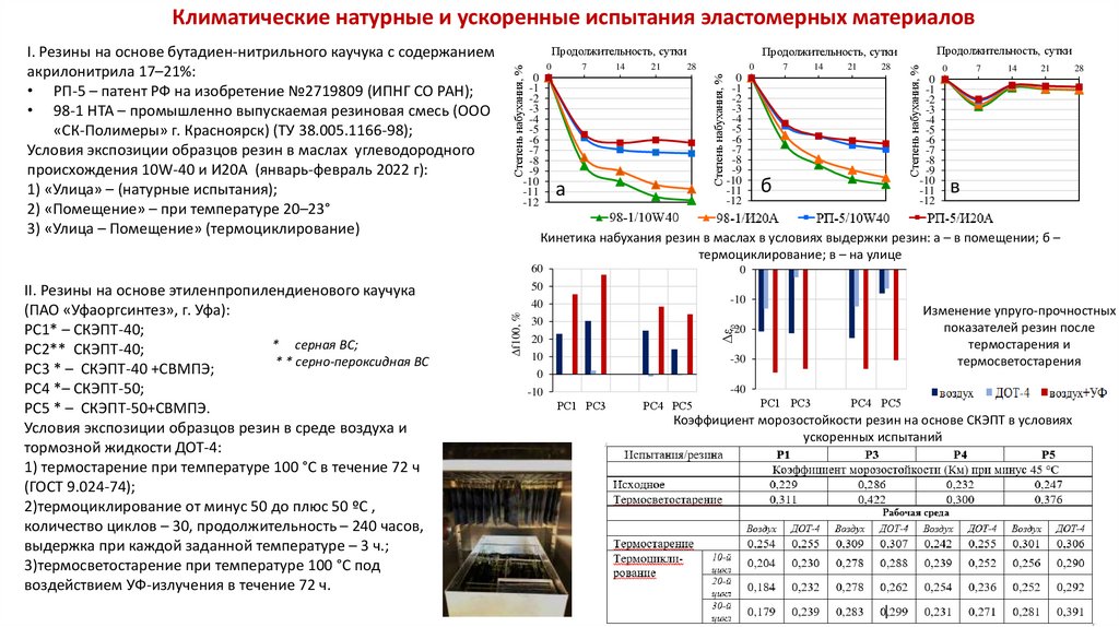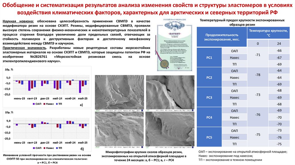 Обобщение и систематизация результатов анализа изменения свойств и структуры эластомеров в условияхвоздействия климатических факторов, характерных для арктических и северных территорий РФ