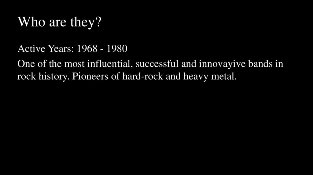 rock history. Pioneers of hard-rock and heavy metal.