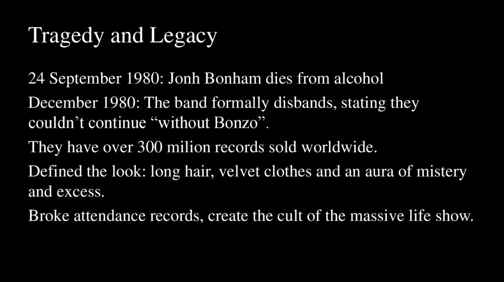 Tragedy and Legacy24 September 1980: Jonh Bonham dies from alcohol