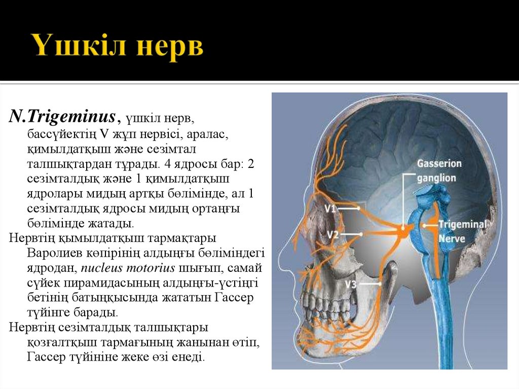 N.Trigeminus, үшкіл нерв,бассүйектің V жұп нервісі, аралас,