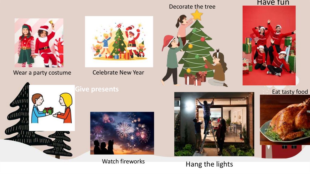 Decorate the treeWear a party costume